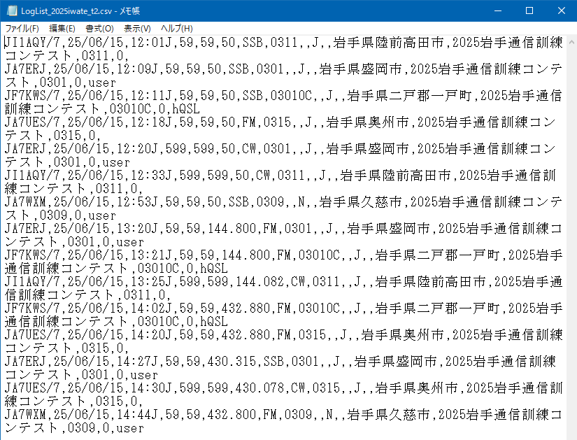 4) 下図が複合条件検索で抽出されたログデータのCSVファイルをメモ帳で開いたものです。