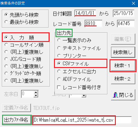 ・ 設定が完了したら「検索-1」ボタンをクリックします